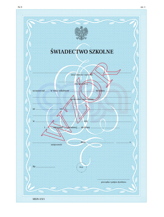 ŚWIADECTWO DLA UCZNIÓW KLAS IV-VII SZKOŁY PODSTAWOWEJ MEIN-I3/1